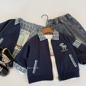 麦宝儿童外套2025秋季新款韩版男童两面穿翻领拉链开衫男孩春秋装
