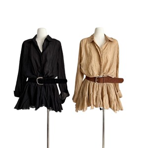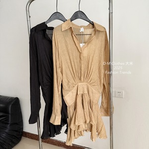 女装褶皱衬衫连衣裙2025夏季新款假两件拼接长袖衬衫百褶短裙