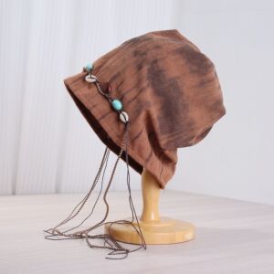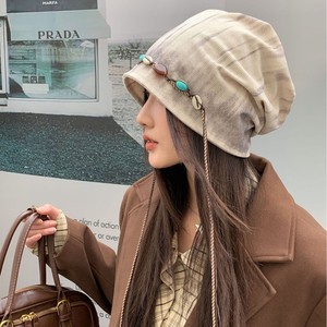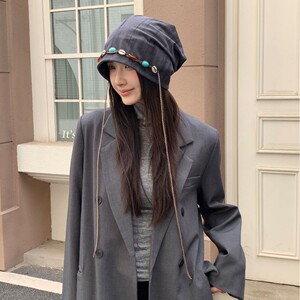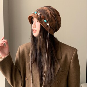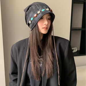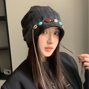韩版复古堆堆帽女秋冬季串珠流苏百搭显脸小民族风冷帽慵懒风包头