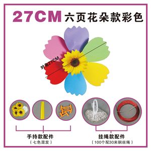 马卡龙六彩风车 教室桌面白色蓝风车 开学布置六一装饰配吸盘底座