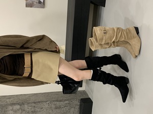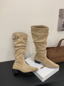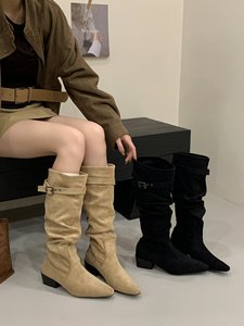 2025秋冬尖头高跟堆堆靴长靴女新款秋冬磨砂绒面瘦瘦长筒骑士靴子