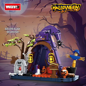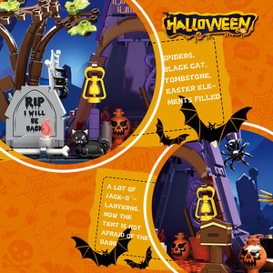 沃马积木万圣节帐篷鬼屋小颗粒拼装模型南瓜屋玩具礼物跨境专供
