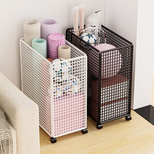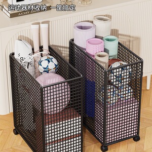 瑜伽垫收纳筐带轮办公室放包桌下工位健身器材收纳移动置物架