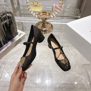 2025新款小牛皮时尚经典百搭踝扣带芭蕾鞋 真皮时尚高跟单鞋女夏