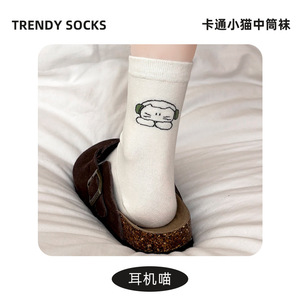袜子女中筒袜ins风动漫可爱卡通小猫咪学生袜堆堆袜棉袜诸暨袜业