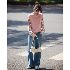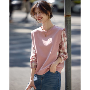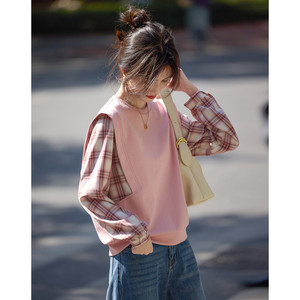 松弛无拘格纹拼接卫衣2025秋季新款女甜酷撞色马夹上衣