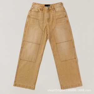 SMFK十字复古宽直筒工装裤手工涂旧垂感牛仔阔腿长裤女25秋季新款