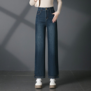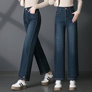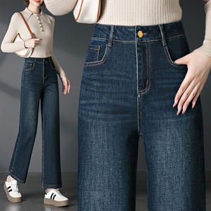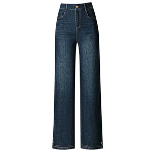 2089秋季阔腿新款中年牛仔裤休闲裤中老年女裤弹力直筒裤大码女装