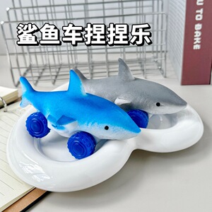 创意鲨鱼玩具车拉拉小汽车解压玩具动物捏捏乐小玩意减压变形滑行