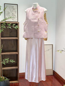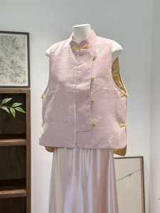 新中式马甲雪尼尔粉色高级感禅意盘扣叠穿背心国风女装新款秋季