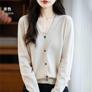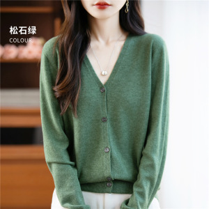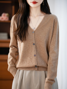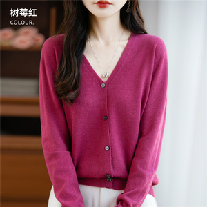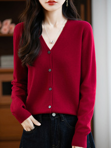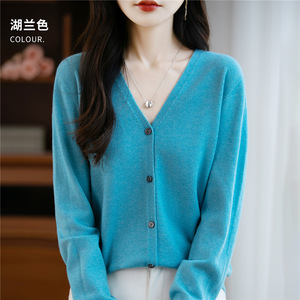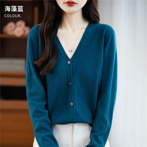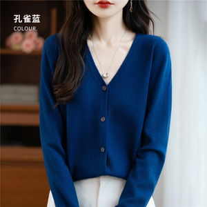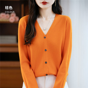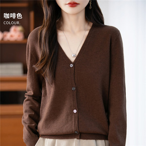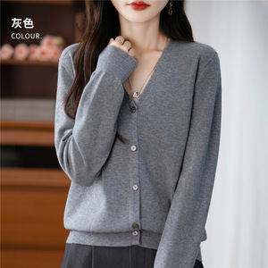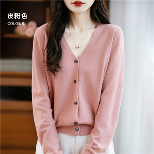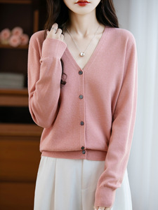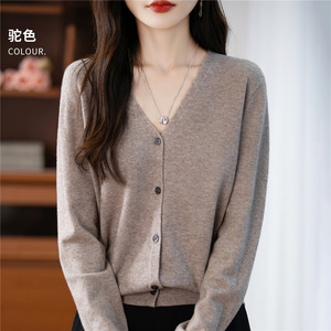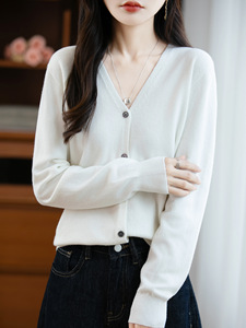 春秋季新款安迪绒针织开衫女百搭小外套纯色V领修身短款外搭毛衣