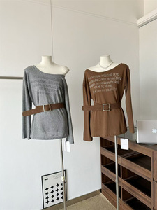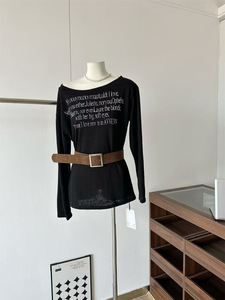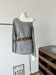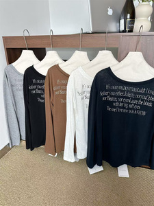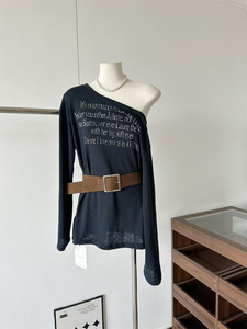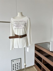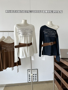 『欣幸』慵懒宽松字母印花长袖T恤女秋新休闲风百搭斜肩长袖上衣