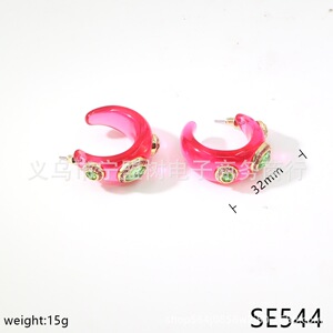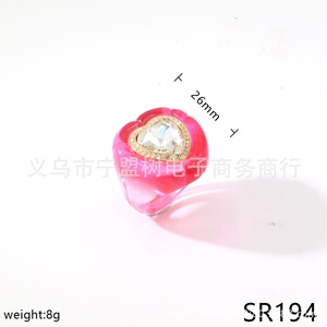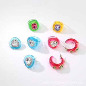 【新品】果冻爱心夹扣蓝色耳钉C字粉色耳钉蓝色红色爱心戒指套装