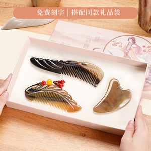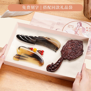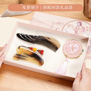情人节礼物送女朋友老婆高档天然牛角梳礼盒生日伴手礼实用创意