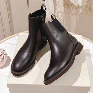 25新款经典珠链牛皮麂皮平底一脚蹬BC法式复古圆头切尔西靴女