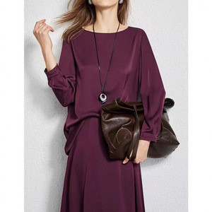 紫气东来重磅真丝上衣女早秋新款气质宽松显瘦百搭圆领桑蚕丝T恤