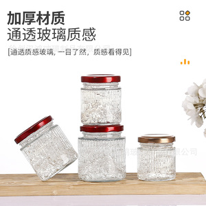 竖纹燕窝瓶透明分装空瓶子家用耐高温玻璃瓶花胶银耳密封小罐