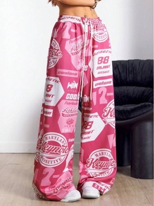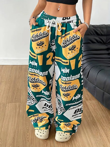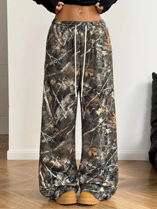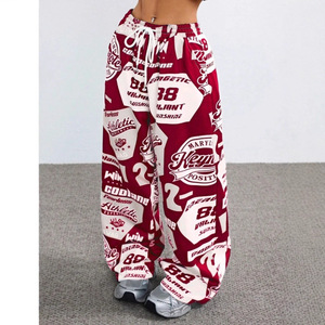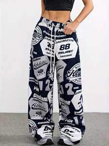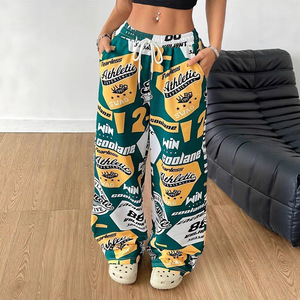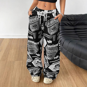 现货2025跨境欧美秋冬女装新款辣妹风口袋街头印花宽松休闲长裤