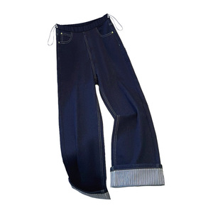 8002孕妇丹宁蓝牛仔裤九分卷边条纹阔腿裤不掉色外穿休闲直筒长裤