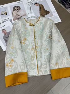 鎏金腰果花羊毛外套精美细腻国风雅韵复古新中式撞色翻袖盘扣上衣