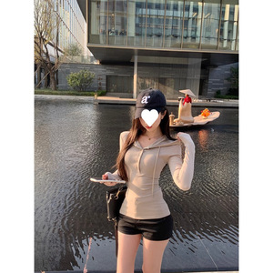 原版人棉面料 韩系连帽长袖T恤女休闲百搭春季修身显瘦小众上衣