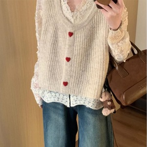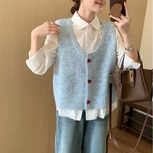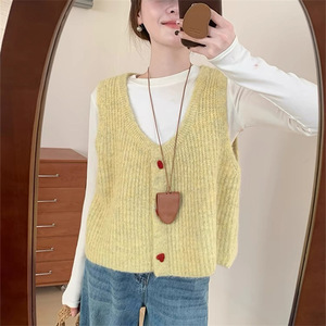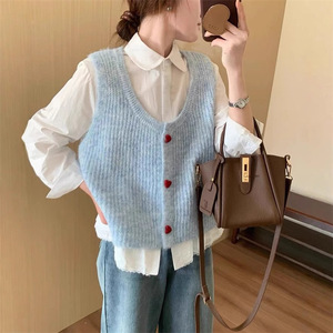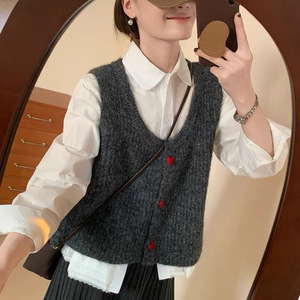 针织马甲爱心扣春秋新款高级感甜美风开衫女外穿背心百搭毛衣上衣