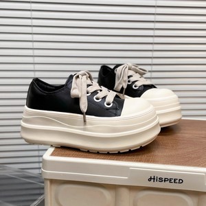 真皮休闲大头丑萌面包牛皮增高小个子黑白小白鞋松糕厚底板鞋女款