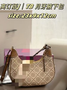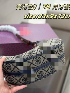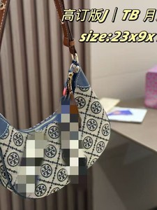 Tortyburch老花帆布刺绣月牙包女士手提单肩斜挎包复古时尚新月包