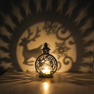 跨境新品圣诞节氛围装饰小夜灯圣诞小鹿投影茶蜡托创意蜡烛台摆件