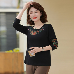 时尚气质妈妈装打底衫秋装女40-60岁女长袖中老年女装新品秋季衣