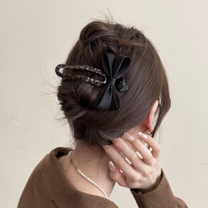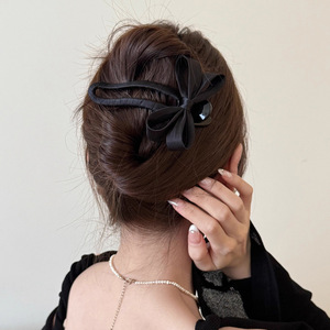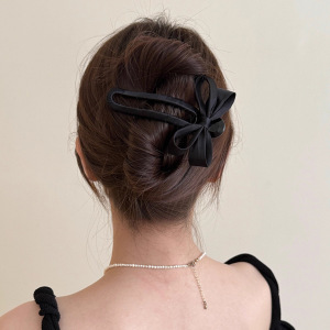 黑色蝴蝶结鸭嘴夹发夹女后脑勺2025新款大号盘发一字抓夹头饰发饰