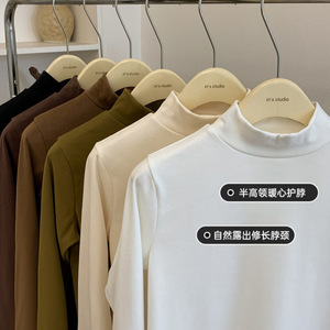 蚕丝蛋白养肤衣秋冬半高领微米绒打底衫女内搭中领纯色保暖长袖