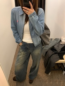 高品质RL拉夫小马标水洗牛仔蓝夹克刺绣老钱风复古翻领外套丹宁蓝