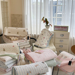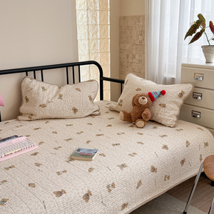 CELING出口韩国卡通小熊床盖被子三件套卡通学生宿舍床盖纯棉被子