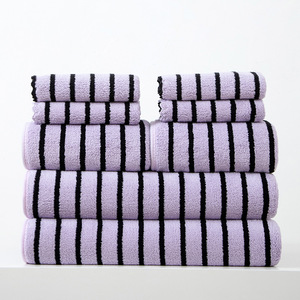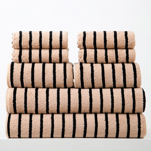 跨境细条8件套毛巾浴巾方巾套装 珊瑚绒毛巾加厚柔软吸水成人浴巾