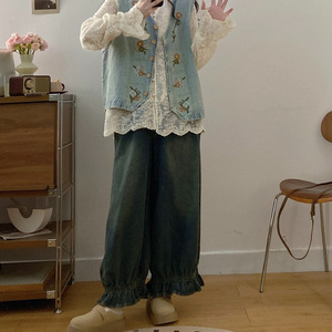 【现货飞】秋季韩式新款设计感重工绣花大码宽松显瘦牛仔马甲女外