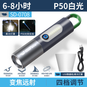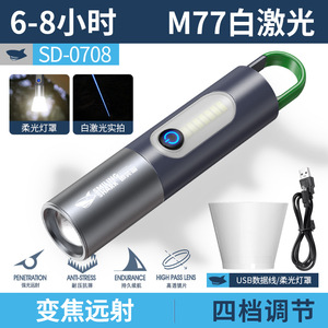微笑鲨户外便携M77白激光可变焦手电COB大泛光露营灯手电筒