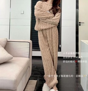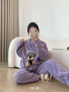 珊瑚绒睡衣女秋冬新款法兰绒可爱时尚长款家居服圆领长袖长裤套装
