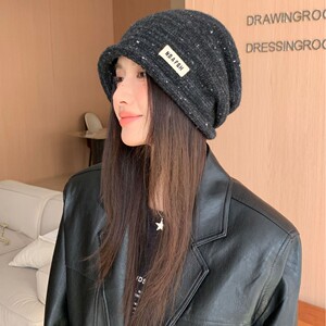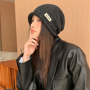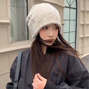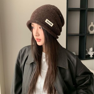 百搭秋冬新款堆堆帽子女卷边大头围显脸小氛围感护耳毛线针织帽子