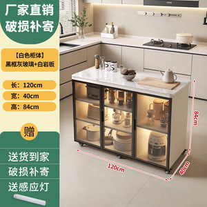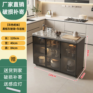 岩板厨房置物柜家用多层餐边柜客厅多功能储物柜可移动收纳小岛台