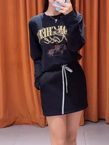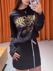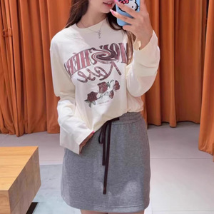 2025秋新品棉质斑驳玫瑰印花烫钻宽松长袖圆领T恤上衣 MBE3TEET15