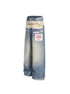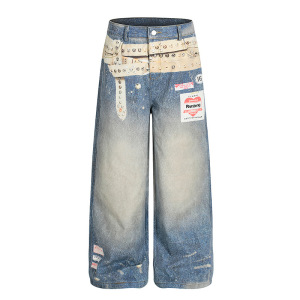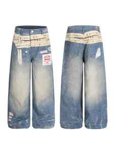 美式复古3D答应腰带牛仔裤男女2025年新款设计感宽松百搭阔腿裤