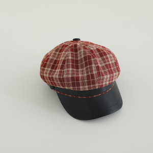 滔格纹报童帽 红+2-6岁(头围48-52cm)+均码