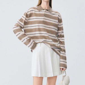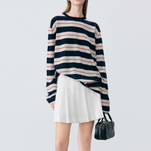 德国进口可水洗全时髦风圆领条纹针织衫2025秋季新款条纹针织长袖