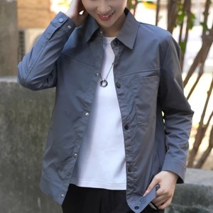 美式cleanfit黑色高级设计立领boxy外套男春秋季翻领夹克情侣上衣