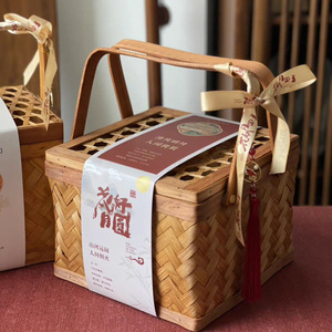 镂空盖方竹编手提空篮+花好月圆封条+花好月圆丝带一个约22x22x16.5CM