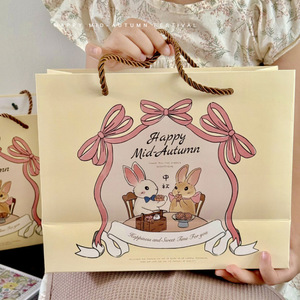 中秋插画兔子白卡纸袋(5个)约25*10*20cm