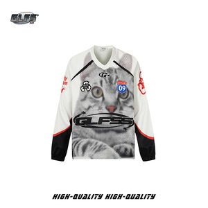 GLFS 美式学院风潮牌猫咪长袖卫衣 BF情侣男式长袖T恤 国潮风痞帅