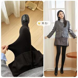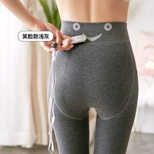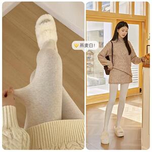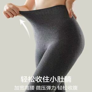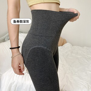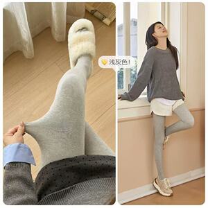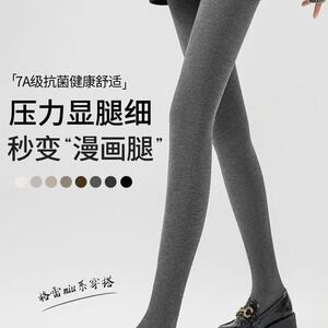 竖条纹打底裤女秋冬加绒加厚微压高腰连裤袜灰色踩脚棉打底袜外穿