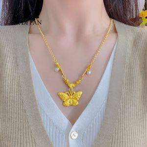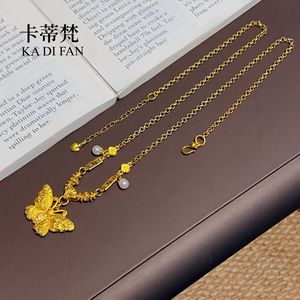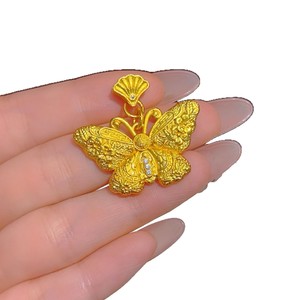 镀真金高保色沙金点钻福蝶迭至蝴蝶吊坠项链新中式原创设计毛衣链